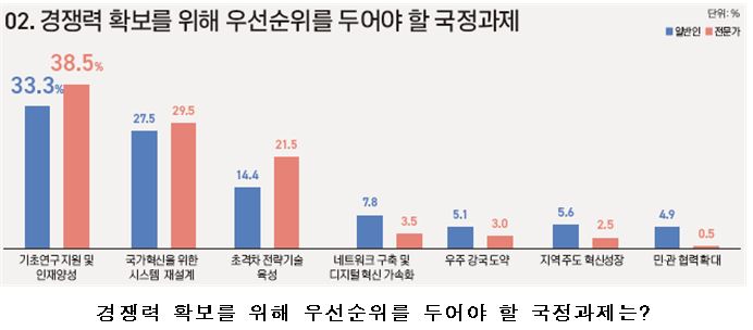 전문가 38%, 과학기술 인재양성이 2025년 국가 경쟁력 확보를 위해 가장 필요..