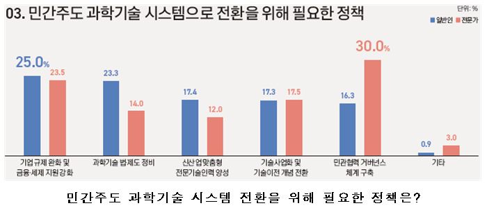 - 전문가 3명 중 1명, 민간주도 과학기술 시스템 전환을 위한 정책으로 민관협력 거버넌스 구축 선택 -