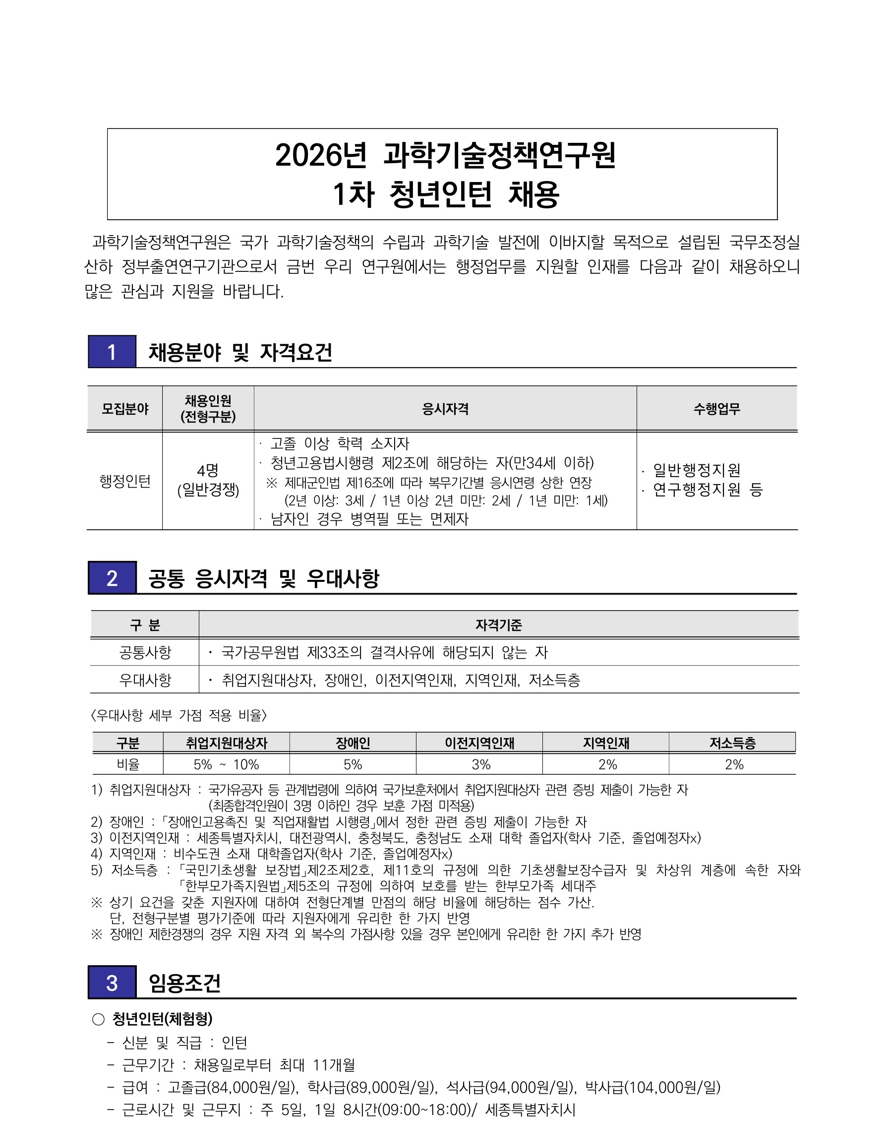 과학기술정책연구원 1차 청년인턴 채용