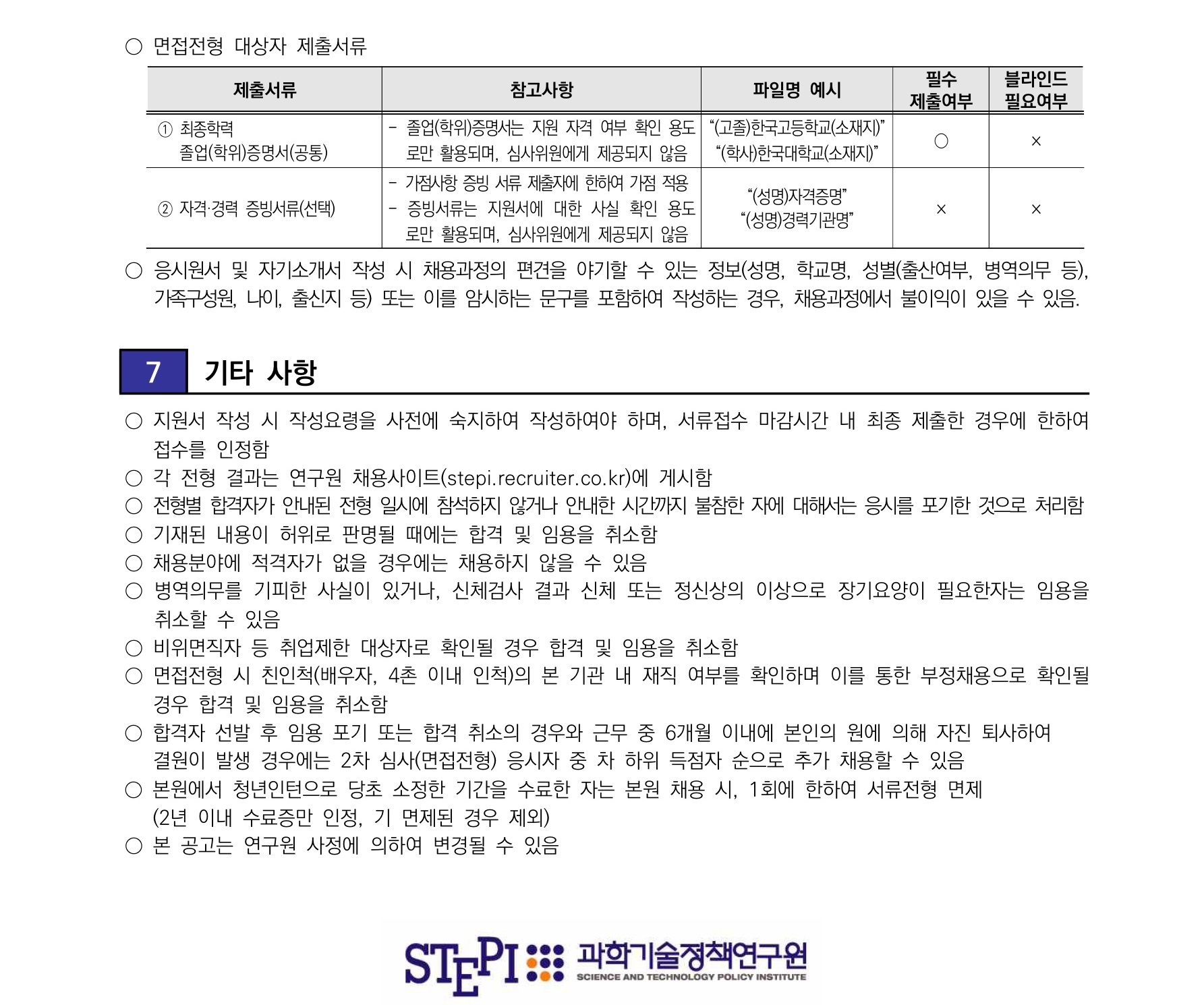 과학기술정책연구원 2차 청년인턴 채용