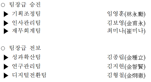 □ 한편, 조직개편과 함께 STEPI는 다음과 같이 주요 보직 인사를 실시했다.