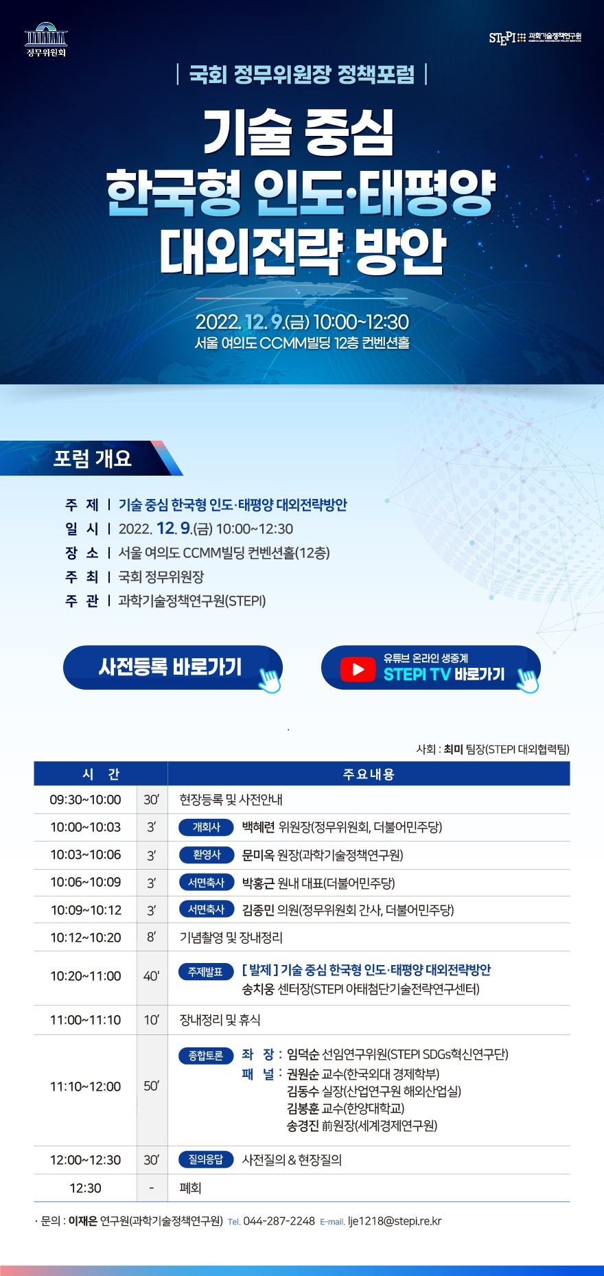 국회 정무위원장 정책 포럼 "기술 중심 한국형 인도·태평양 대외전략방안" (12.9)